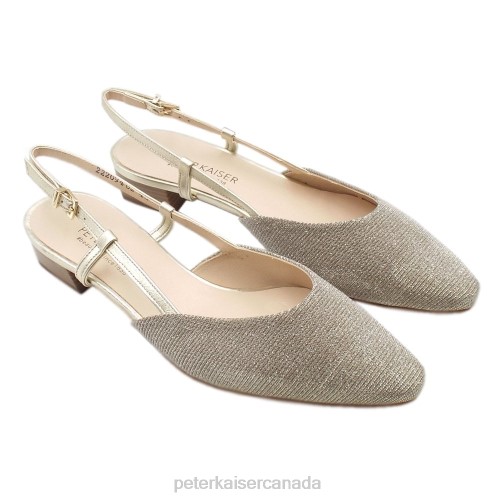 Peter Kaiser Calissa – women’s dressy low heel sandals in sand shimmer – ladies evening closed toe sandals in sand glitter shimmering textile.Chic and dressy, Peter Kaiser Calissa eye-catching evening sandals have closed toe sand shimmer textile upper and gold leather adjustable slingback with extra support and comfort for the back of your heels. Peter Kaiser Calissa evening sandals have low 2.5cm block heel. Matching bag available.