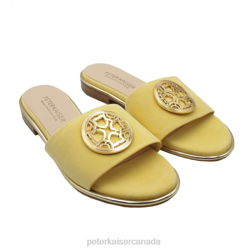 Peter Kaiser Heels – Peter Kaiser Riva Low Heel Open Toe Shoes Lemon Suede Women JN8B102 Footwear