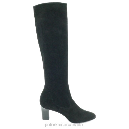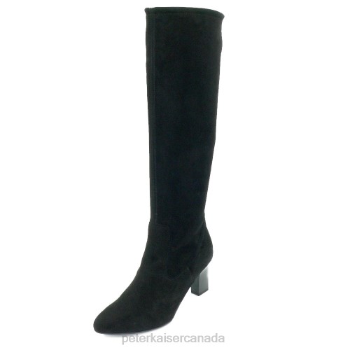 Peter Kaiser Shoes Canada – Peter Kaiser Monja-A Pull On Stretch Knee High Boots Black Suede Women JN8B215 Footwear