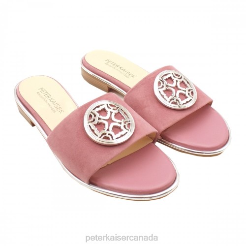 Peter Kaiser Riva – Ladies low heel open toe slide sandals in cassis suede with chic silver detail.Peter Kaiser Riva low heel shoes are made with beautiful cassis suede upper and have leather lining and insole. Peter Kaiser Riva open toe shoes have comfortable 15mm wood effect block heel.